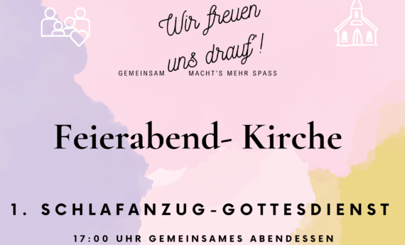 Wir starten um 17.00 Uhr mit einem Schlafanzuggottesdienst für Kinder und Bezugspersonen. Unsere jüngsten Kinder sind erst ein halbes Jahr alt, die Ältesten etwa 5. Im Schlafanzug kommen zu dürfen, bleibt für viele Kinder ein besonderes Highlight. Es ist Zeit, gemeinsam zu spielen, anzukommen und sich dann am Mitbringbuffet zu stärken, bevor wir Andacht feiern.
