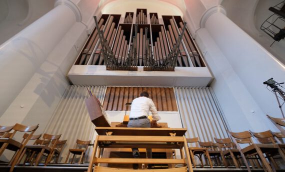 Zu Beginn des Konzertes wird es eine Einführung zu den Werken auf der Orgelempore mit Klangbeispielen geben. Anschließend sind die Zuhörer eingeladen das gesamte Programm von unten aus dem Kirchenschiff in der wunderbaren Raumakustik zu hören. Der Organist wird dann auf einer Leinwand per Videoübertragung zu sehen sein.